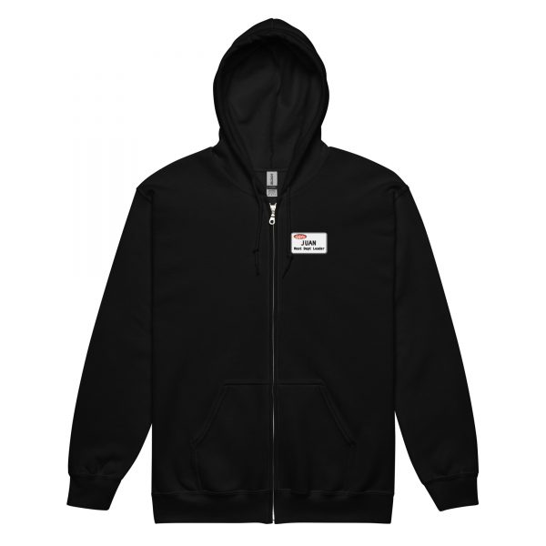 Designed with style and comfort in mind, this hoodie will quickly become your new favorite. It’s made from soft fleece inside and outside, with a sturdy metal zipper, convenient front pockets, and a hood with color-matched drawstrings.